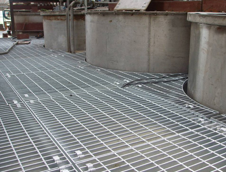 污水廠用鋼格板   污水處理廠用鋼格柵其特點為:   1、強度高:牢固的網(wǎng)格壓焊結(jié)構(gòu)使其具有高承載;   2、結(jié)構(gòu)輕:便于吊裝等特點;   3、外形美觀,經(jīng)久耐用:熱浸鋅表面處理使其具有相當好的防腐能力,表面光澤美觀; ···